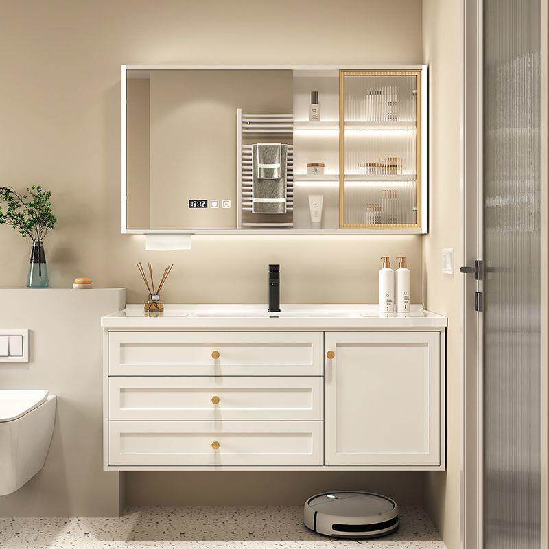 奶油风卫生间洗漱台一体台盆浴室柜组合洗手池智能镜子挂墙落地式