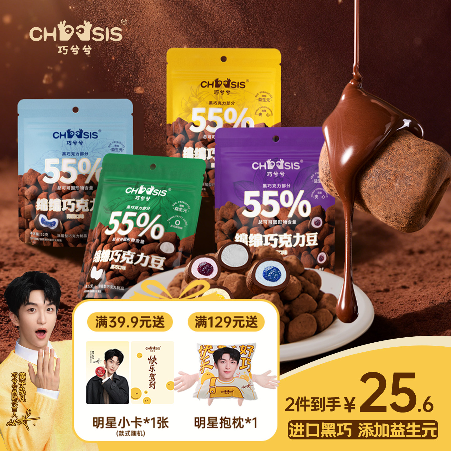 【全新升级】巧兮兮绵绵棉花糖巧克力豆黑巧涂层休闲夹心小零食