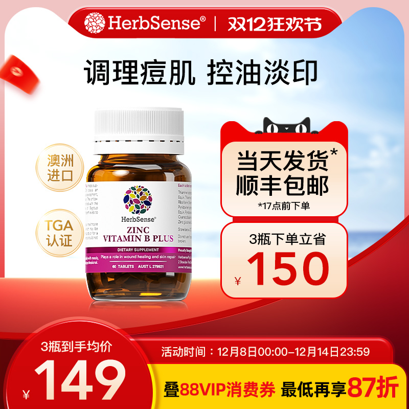 Herbsense贺柏圣维B锌加片内调维生素b族补锌控油青春痘粉刺痘印
