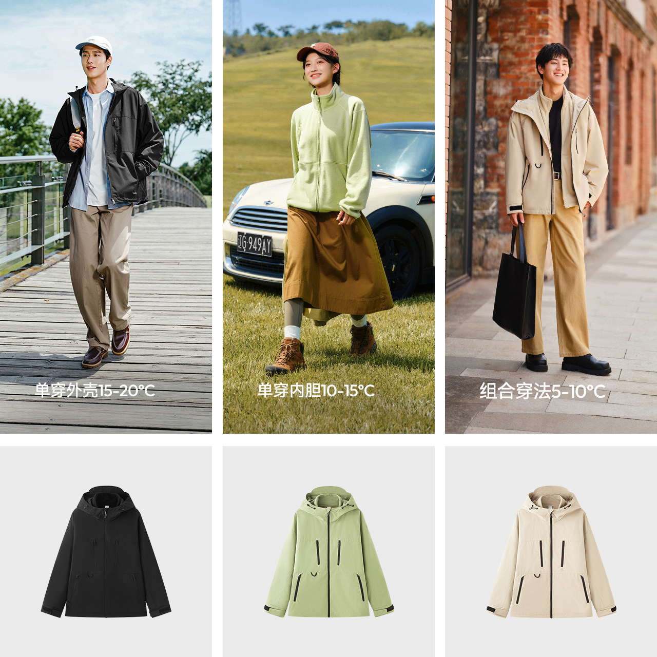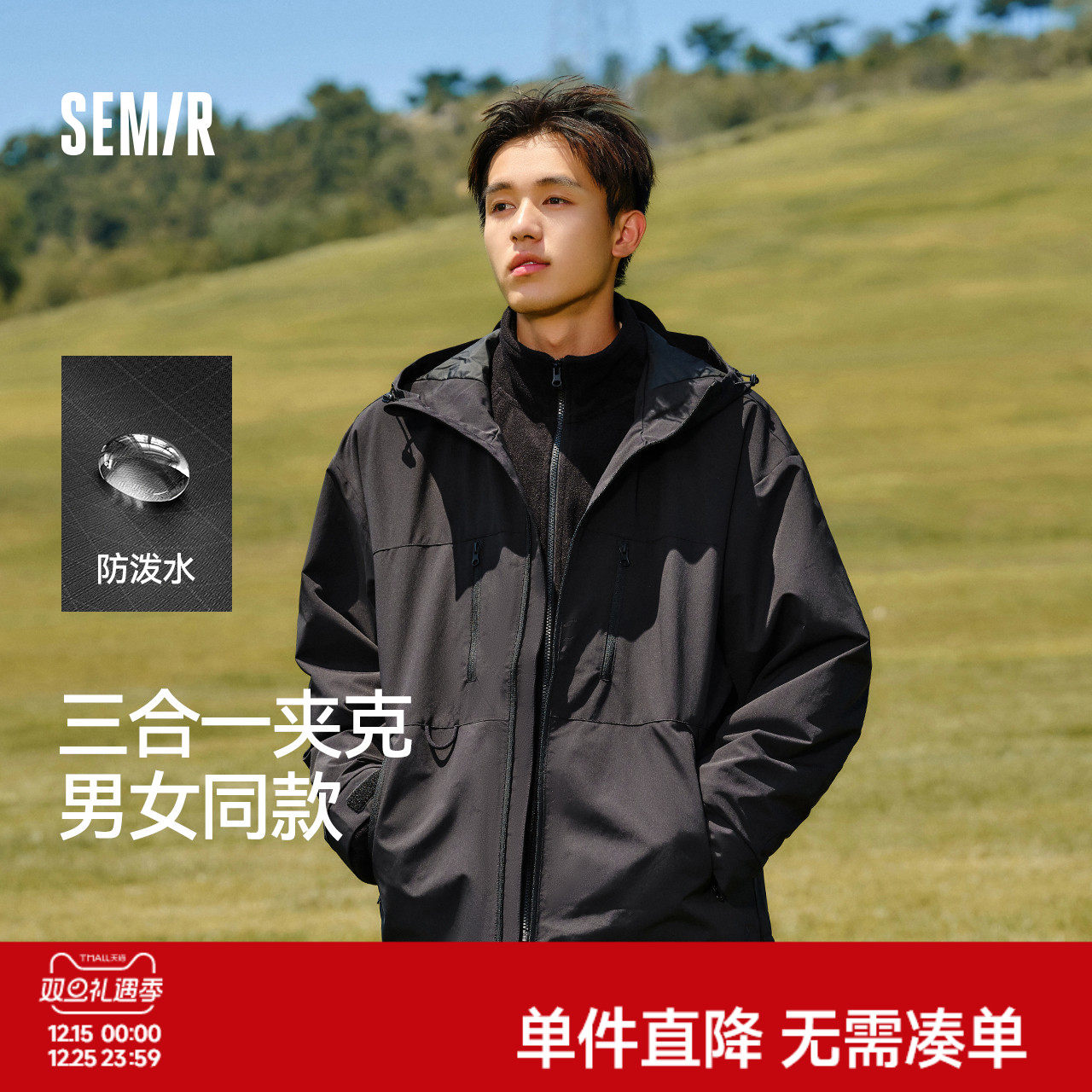 森马三防夹克男2024冬季新款可拆卸三合一户外休闲外套男防风防水