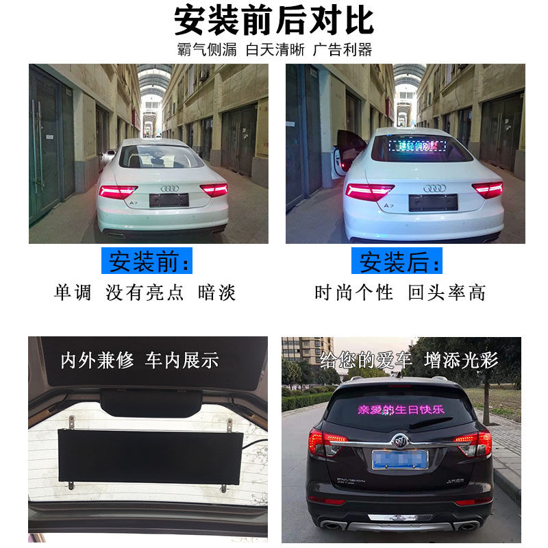 车载led显示屏汽车内后窗玻璃滚动字幕12v电子广告屏手机控制改字