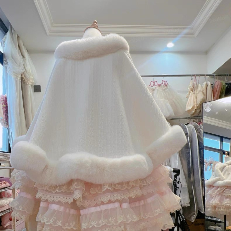 秋冬斗篷披肩外套甜美lolita斗篷保暖洛丽塔百搭加厚汉服披肩