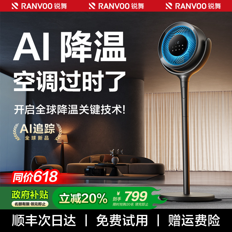 推荐理由:锐舞空气循环扇2025新款AI智能净化台式风扇静音家用电风扇落地扇