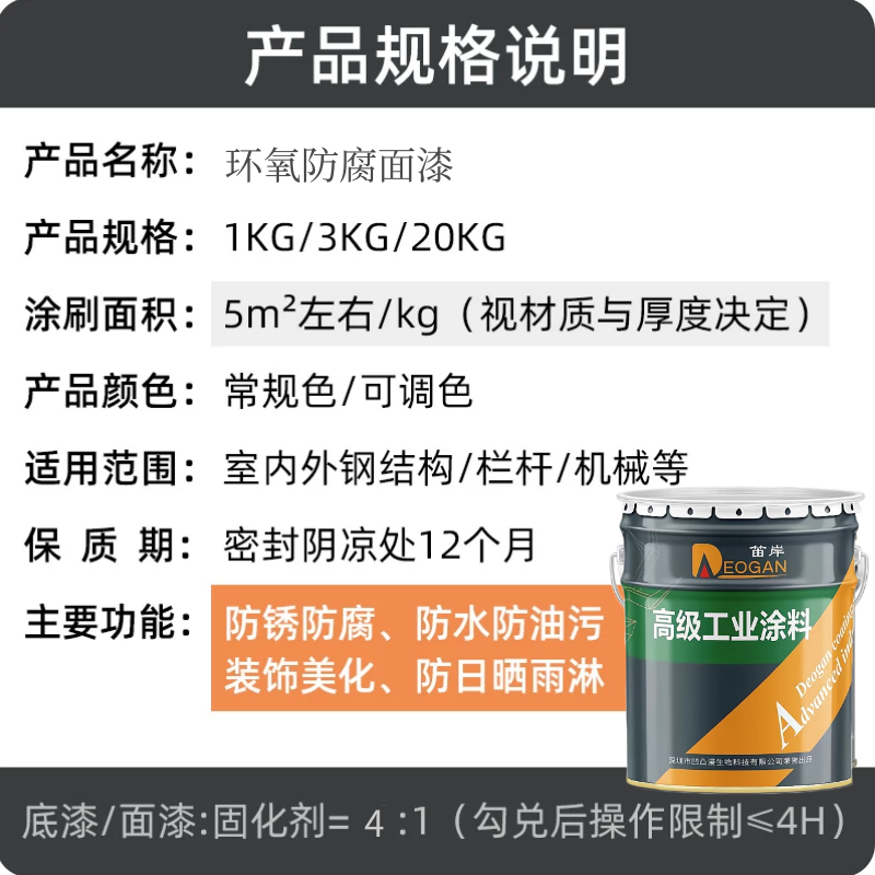 推荐理由:环氧防腐面漆钢结构专用金属漆防锈漆栏杆油漆快干铁门耐用彩钢瓦