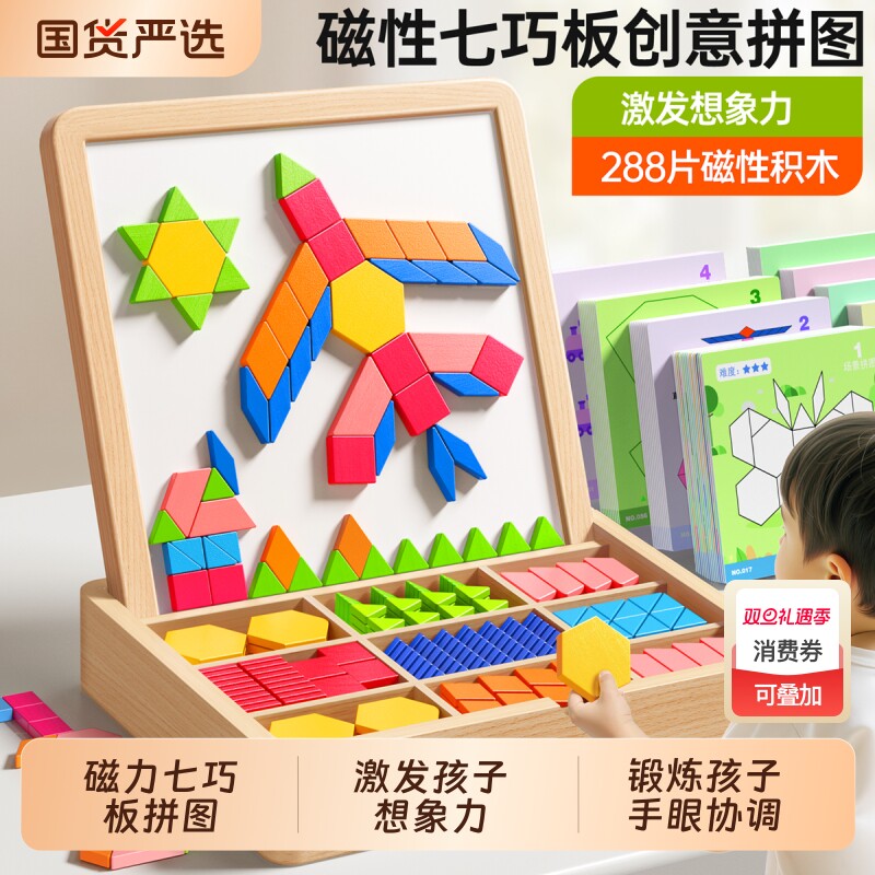 七巧板磁力拼图专注力训练儿童3到6岁益智早教动脑的玩具开发智力