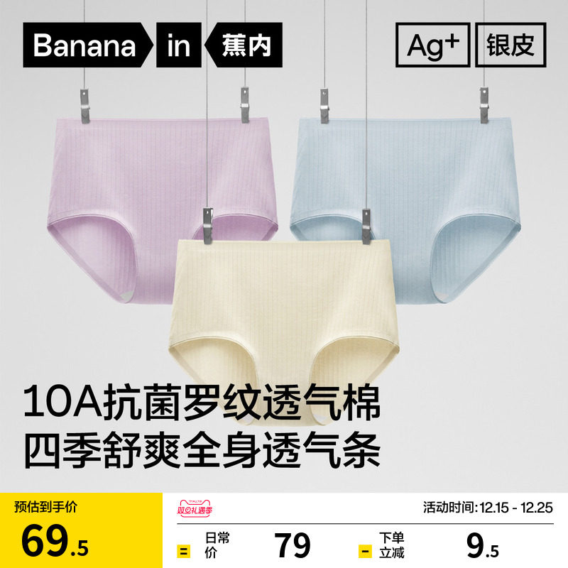 3件|蕉内银皮311S女士内裤收腹纯棉透气裆不夹大码短裤女三角裤