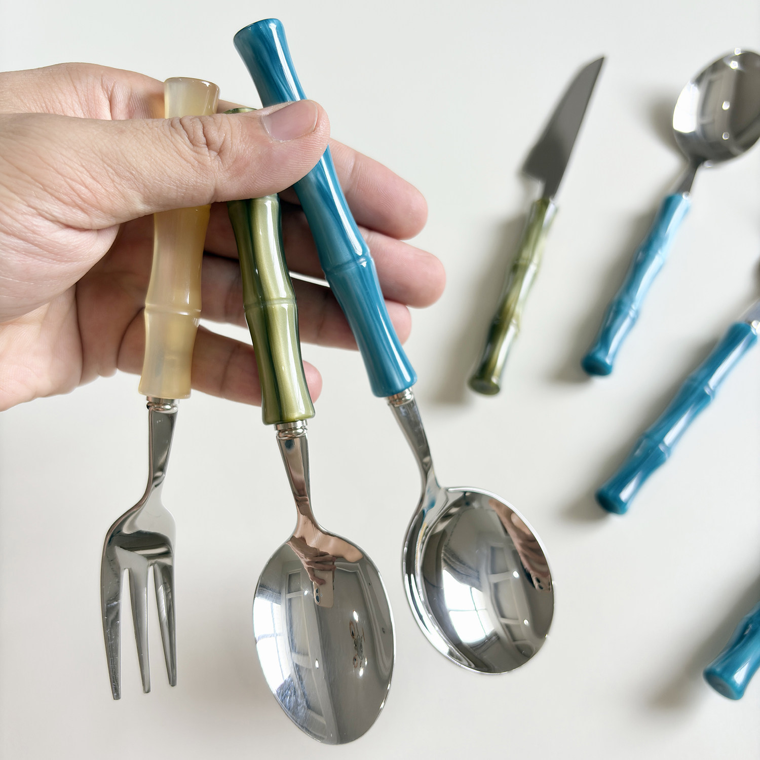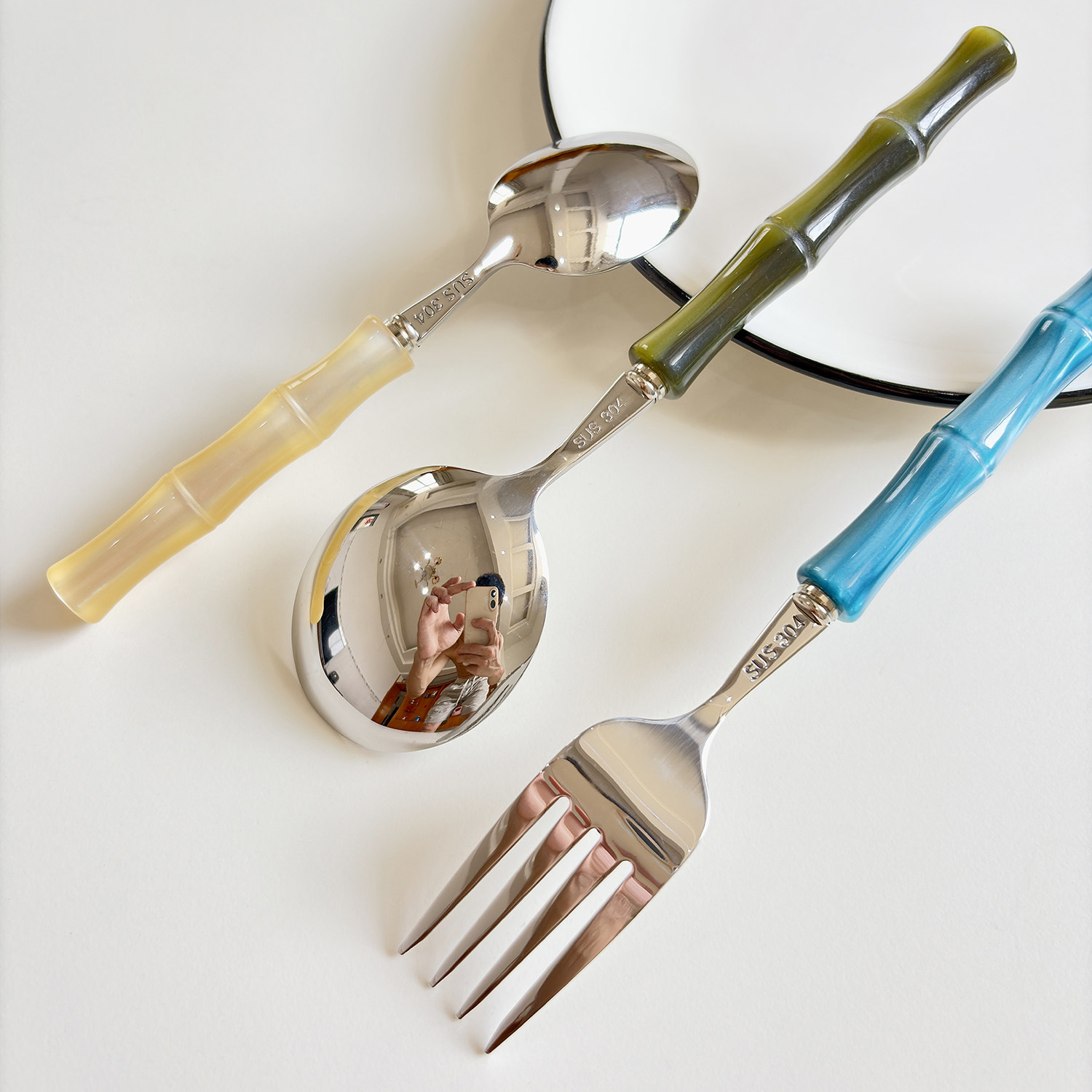 304不锈钢西餐具套装刀叉勺亚克力柄甜品小勺子高颜值意面叉餐勺