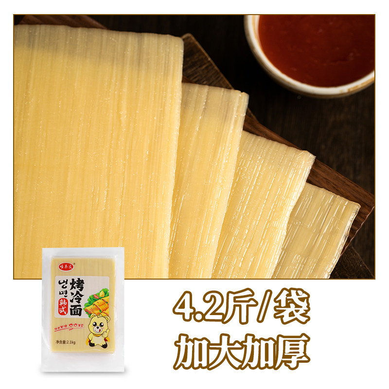 推荐理由:韩式烤冷面片商用摆摊外卖东北烤冷面皮加宽加厚四川成都工厂直发
