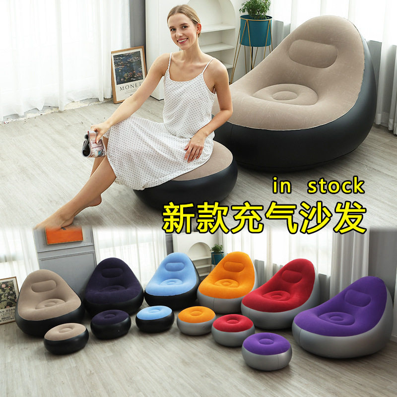 推荐理由:新款懒人沙发充气可折叠躺椅户外沙发床带脚蹬舒适组合植绒沙发椅