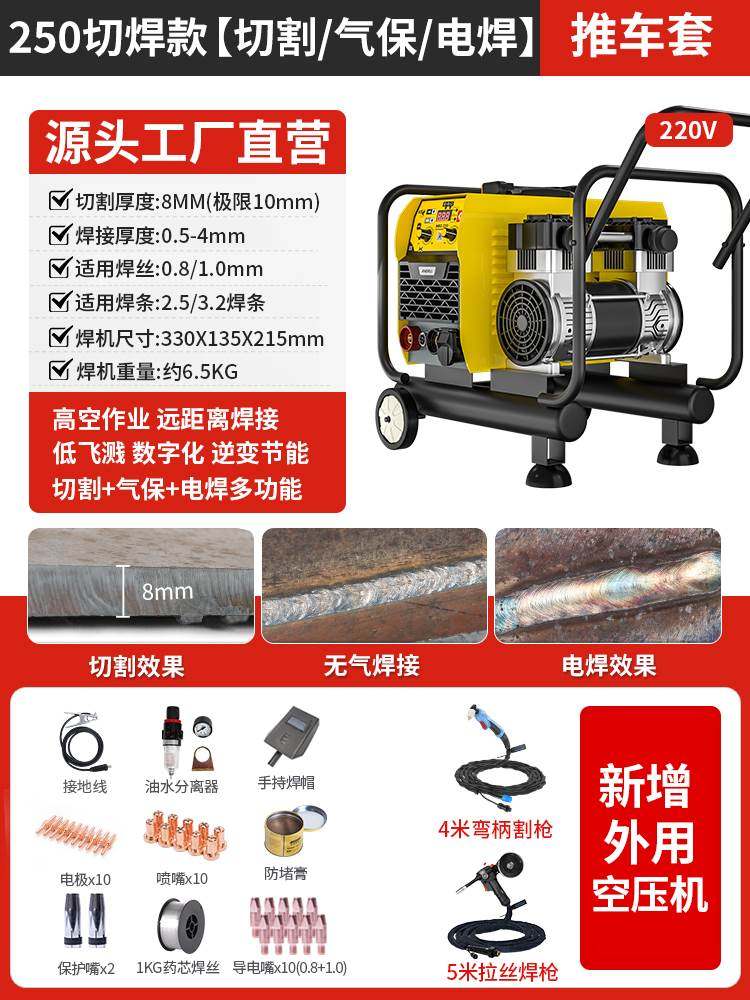 无气二保焊接机工业级220V380手工可携式碳不锈钢切割双电两用电