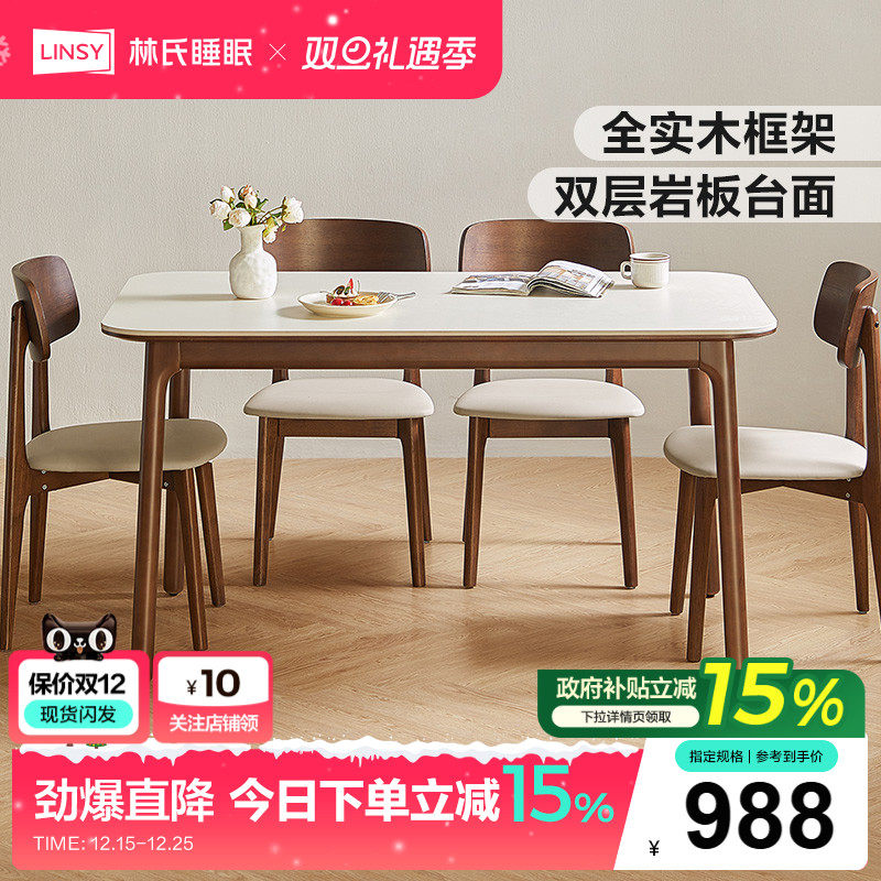 林氏睡眠实木脚岩板餐桌中古风方桌家用书桌小户型新款桌椅理想家