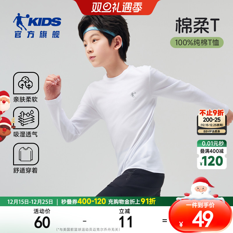 乔丹童装儿童t恤长袖男童纯棉上衣2025春秋新款大童运动打底衫女