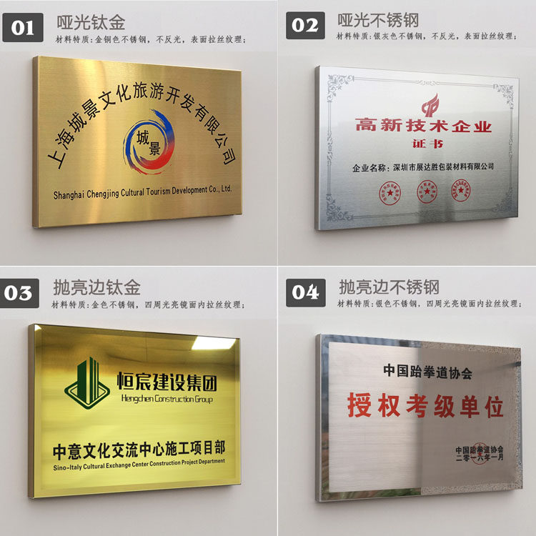 定做户外不锈钢钛金标牌铜牌奖牌告示牌公司名称牌定制广告牌标志