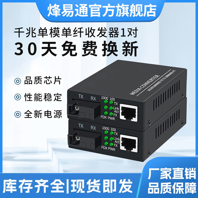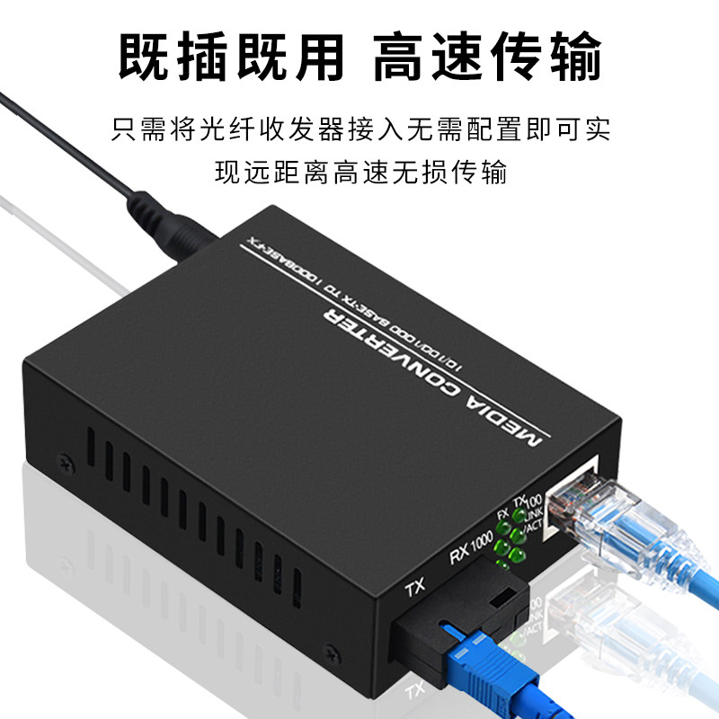 光纤收发器千兆SC光电转换器光纤转网线接口视频监控网络千兆单模单纤HTB-GS-03 1光1电外置电源一对