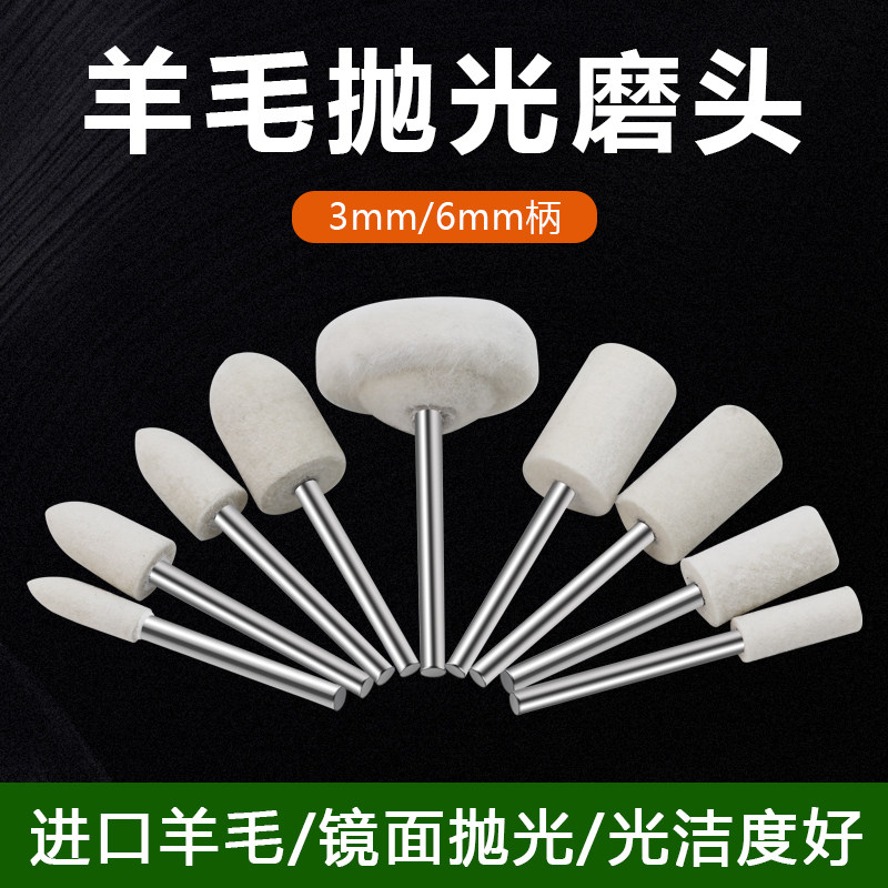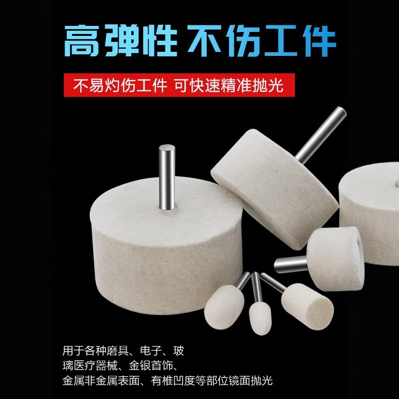 羊毛抛光打磨头带柄羊毛轮抛光球镜面玉石金属翡翠工具打磨神器