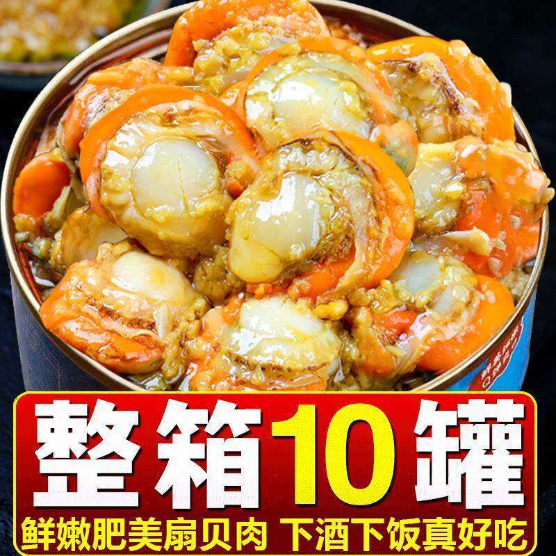 速发蒜蓉扇贝罐头一整箱麻辣小海鲜熟食扇贝肉开袋即食零食小