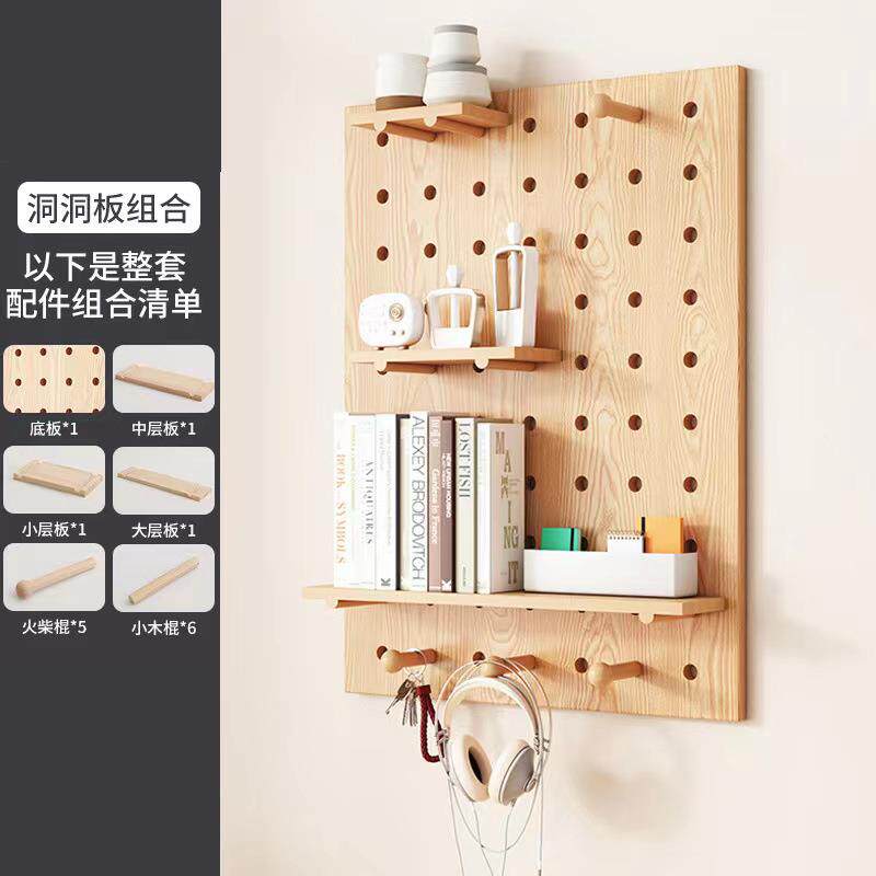 实木洞洞板收纳置物家用厨房074木板质洞洞架板打钉壁挂隔木质装