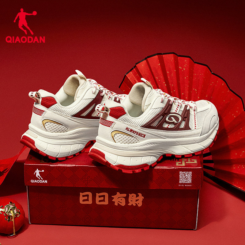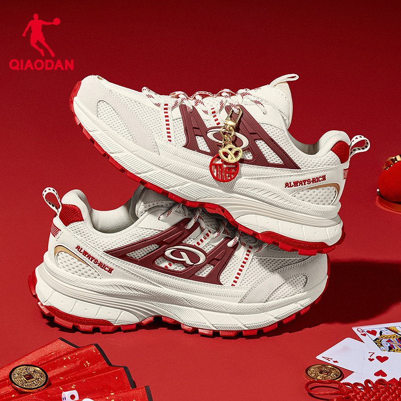 推荐理由:乔丹开元V3休闲鞋男老爹鞋2026春季新年红色鞋子厚底增高网面男鞋