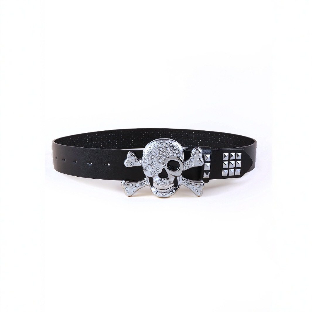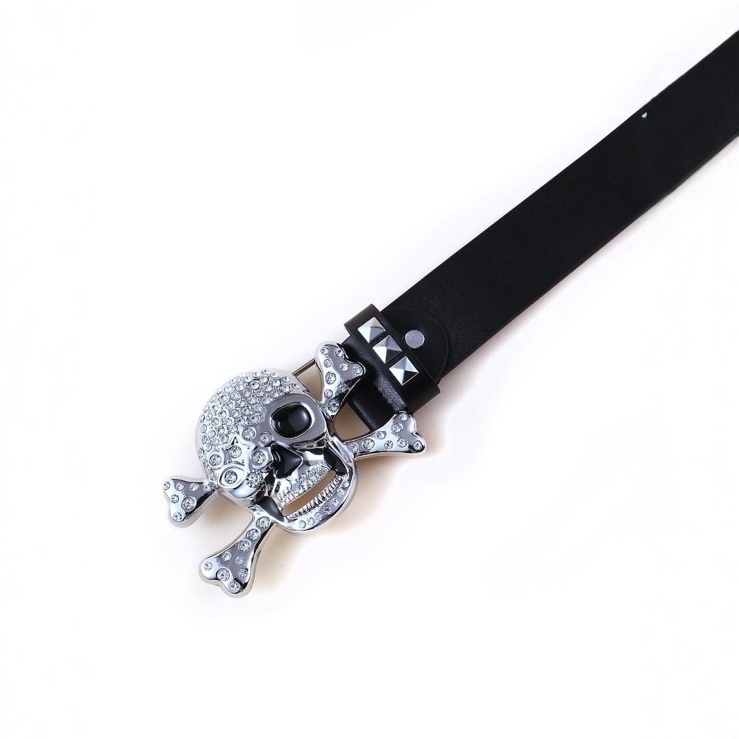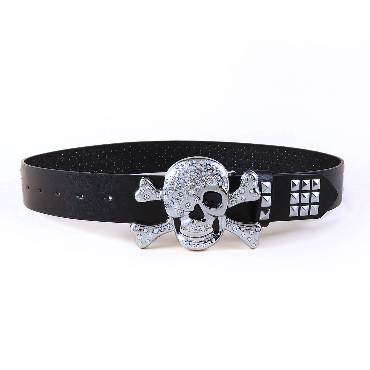 推荐理由:新款女士欧美个性骷髅头腰带铆钉镶嵌朋克风四方珠子黑色皮带裤带