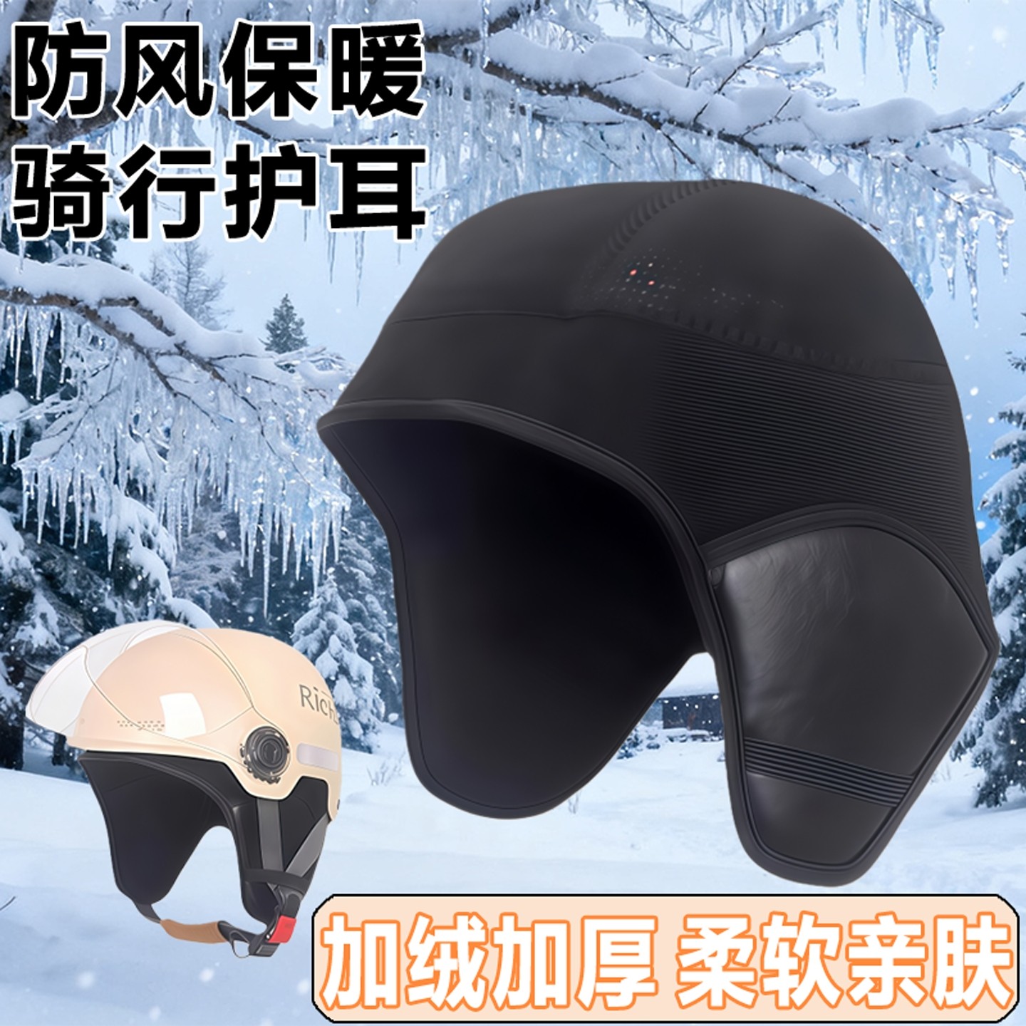 推荐理由:冬季头盔保暖加绒可拆内胆防寒防风内衬电动车骑行遮耳护耳帽围脖