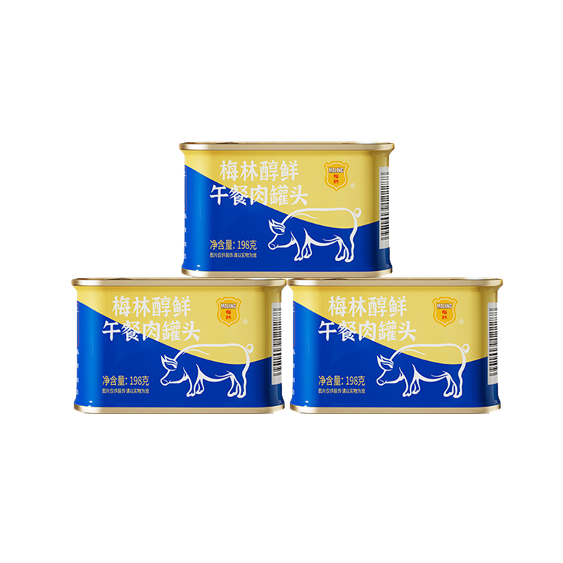 降价3亓!!折7亓/罐!线下卖你15亓啊! 梅林旗舰店•午餐肉198g*3罐 下拉!进淘宝秒杀21.66亓 中粮出品肉源可追溯放心大胆吃! 马口铁盒包装的!更锁鲜更营养!!