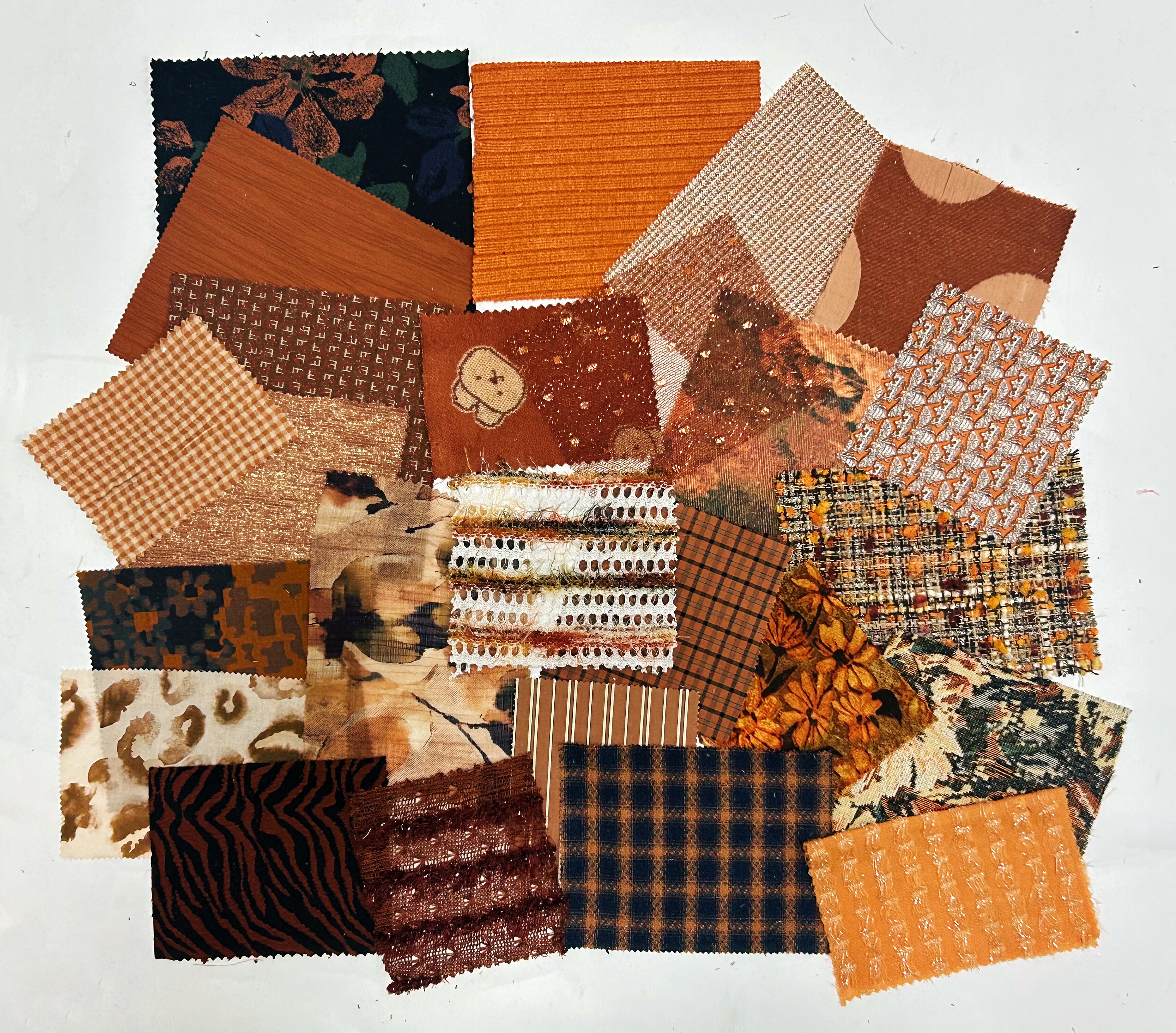 复古色系服装设计作业面料小样布料小块碎布头面料diy手工拼贴画