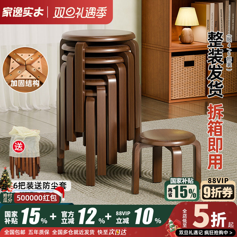 家逸实木圆凳子家用木板凳简约小凳子矮凳客厅木凳餐桌凳可叠放凳