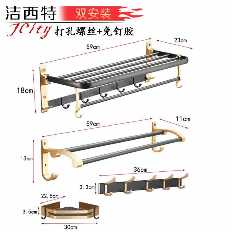推荐理由:太空铝卫浴套件免打孔卫生间五金挂件浴室收纳毛巾杆黑金六件套装