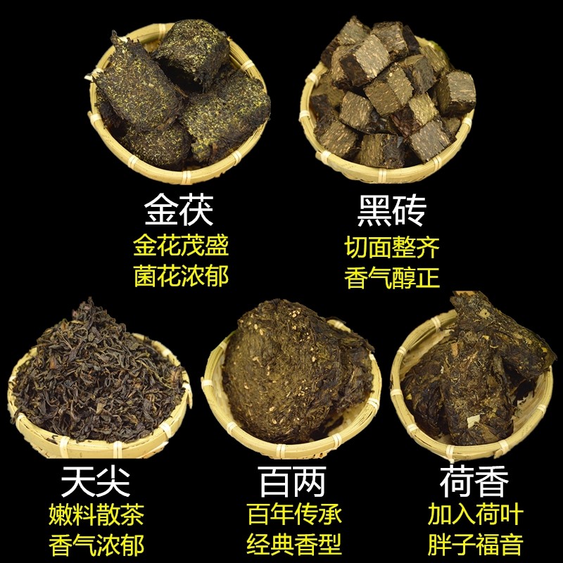 黑茶湖南安化正品正宗安化柱子茶天尖金茯荷香黑砖五种搭配500g