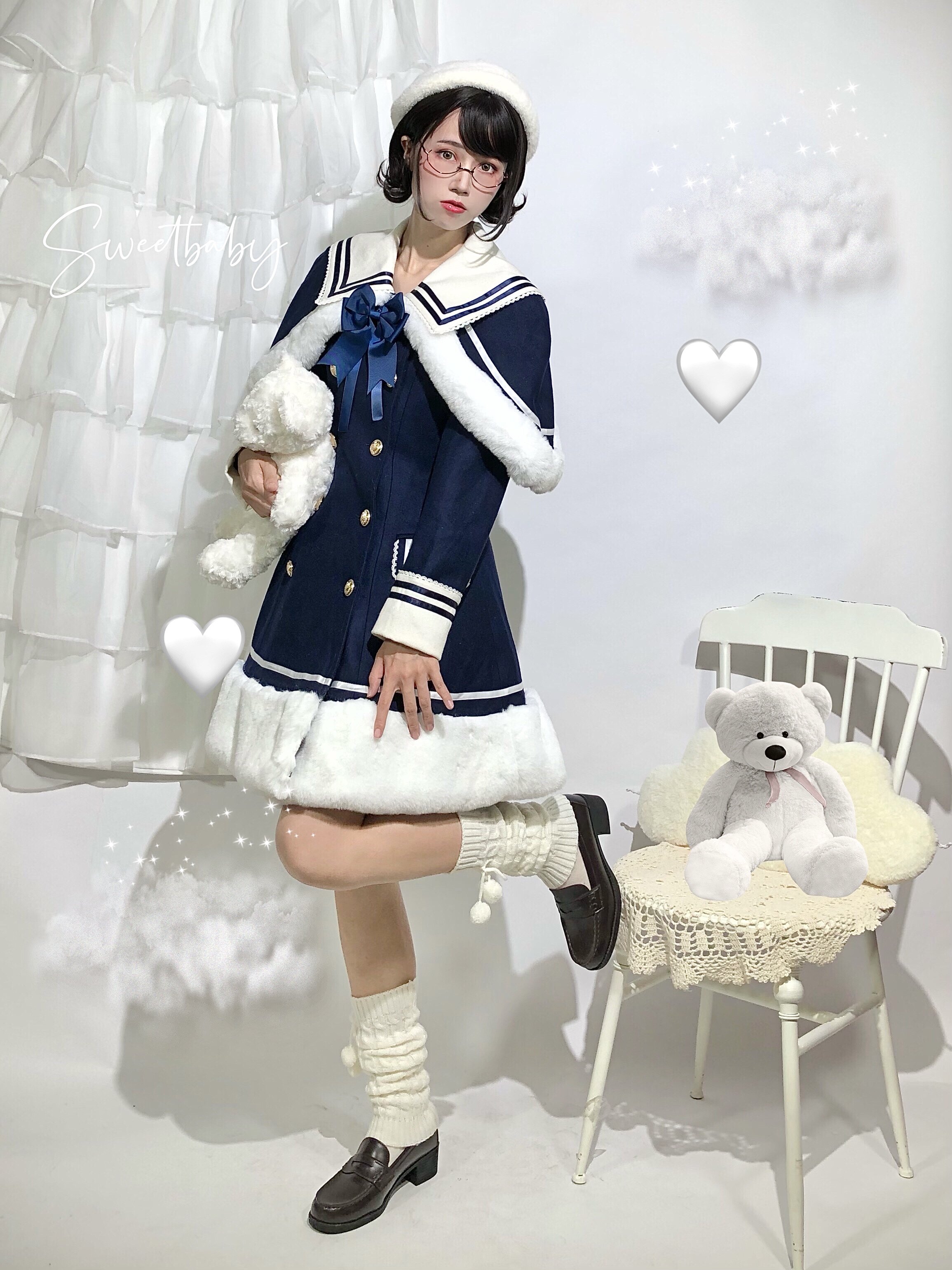 推荐理由:现货 草莓巫女原创复古披肩款海军领Lolita毛呢新年洛丽塔大衣