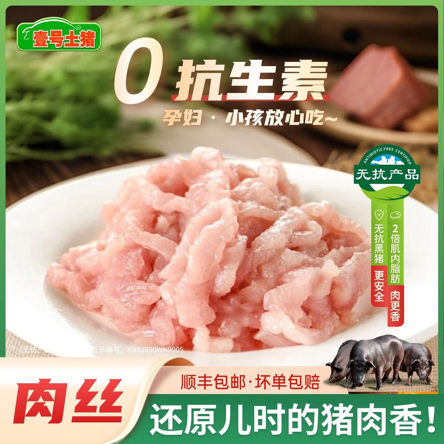 壹号土R 无抗黑猪肉馅新鲜猪生猪肉夹心肉糜包子饺子瘦肉丝猪肉馅