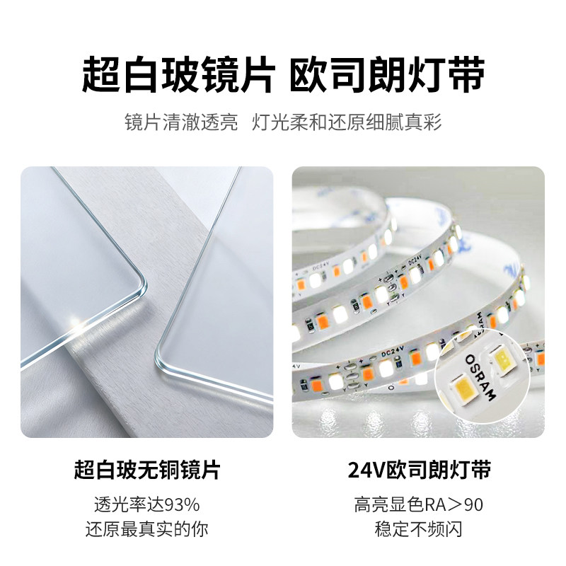 智能浴室镜超白镜带灯高清挂墙式卫生间led防雾镜洗手台卫浴镜子