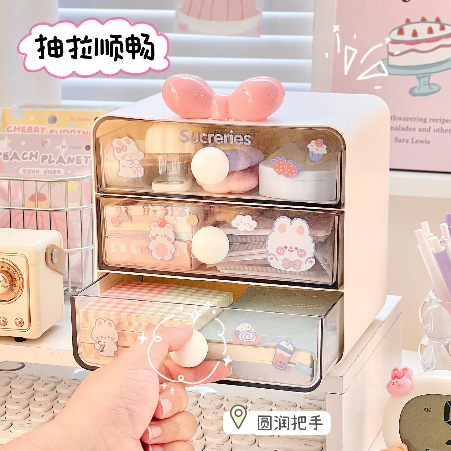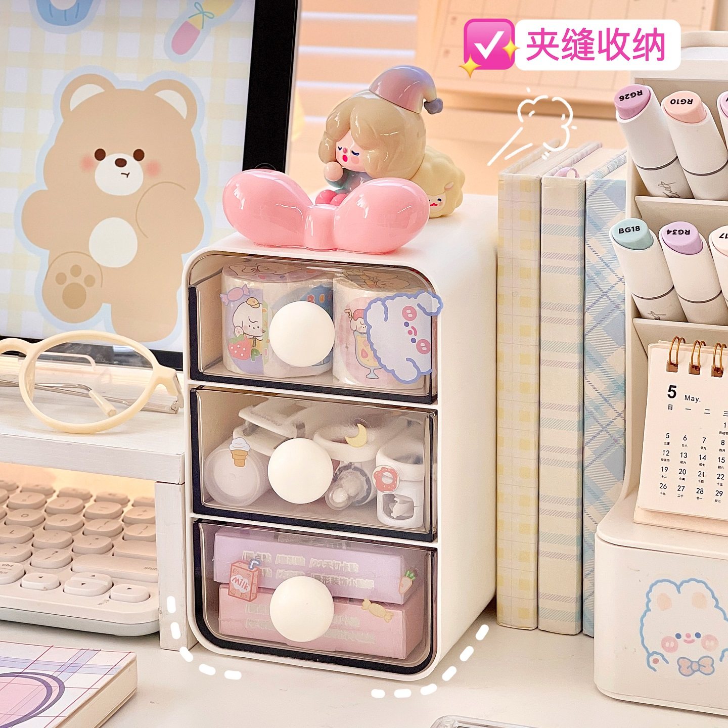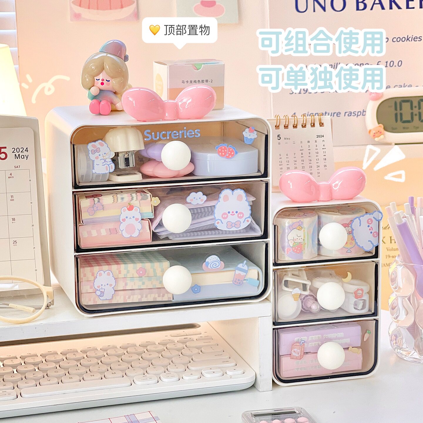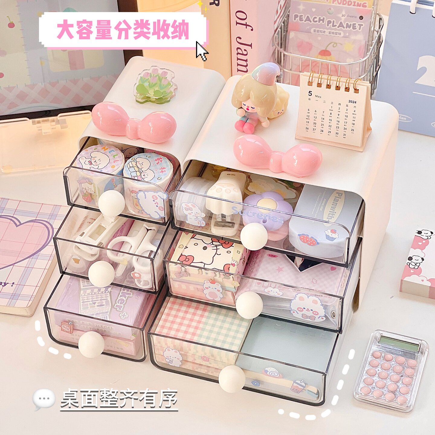 桌面文具收纳盒多层抽屉式简约可爱书桌布置整理置物架办公室笔架