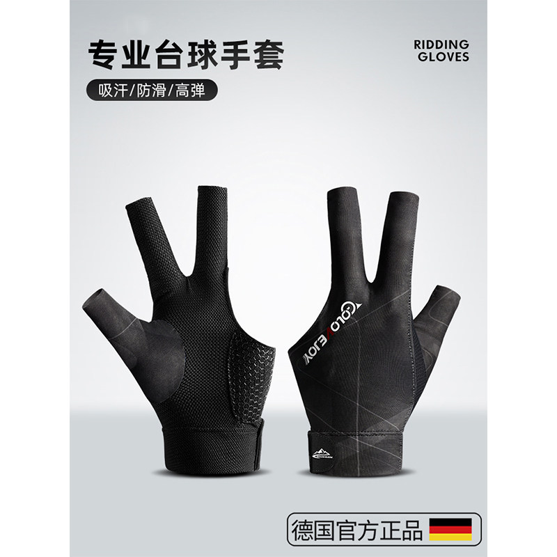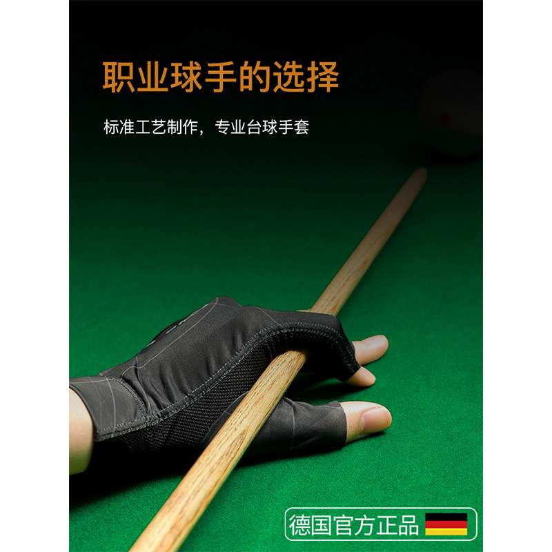 德国职业台球手套薄款三指透气专业高档防滑露指桌球专用手套男士