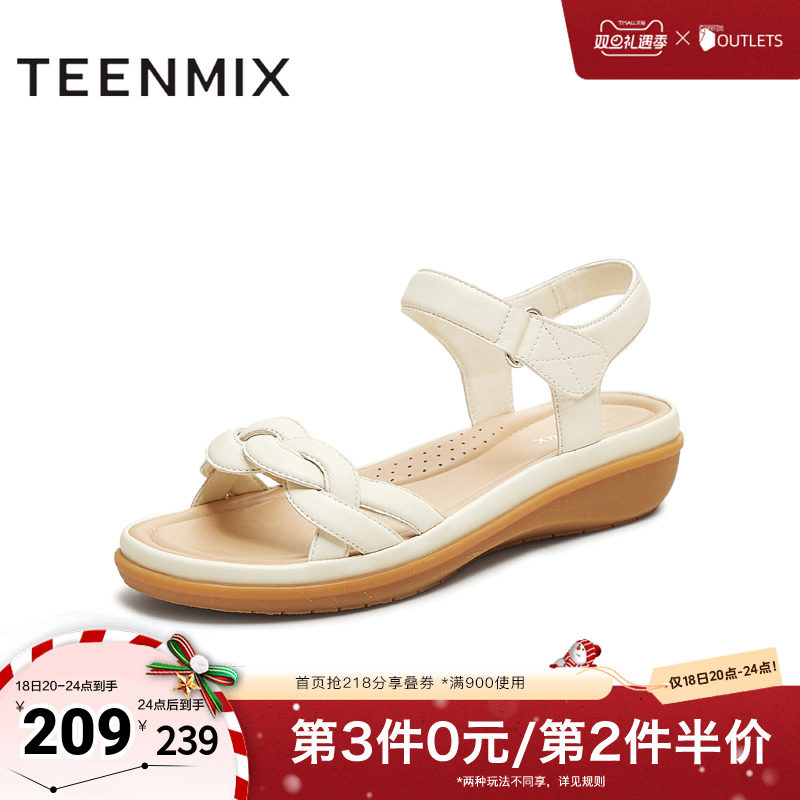 天美意2025夏新款平底凉鞋通勤百搭沙滩鞋女一字带凉鞋KI013BL5