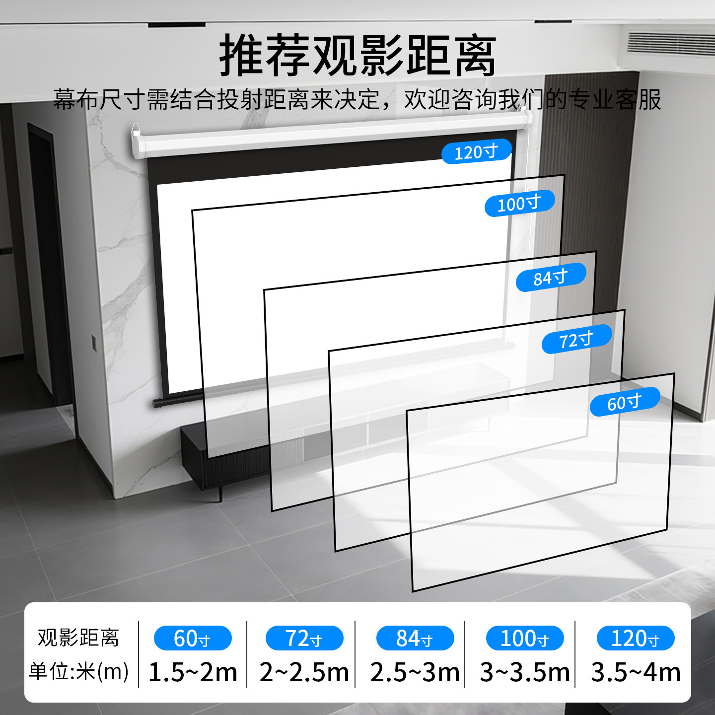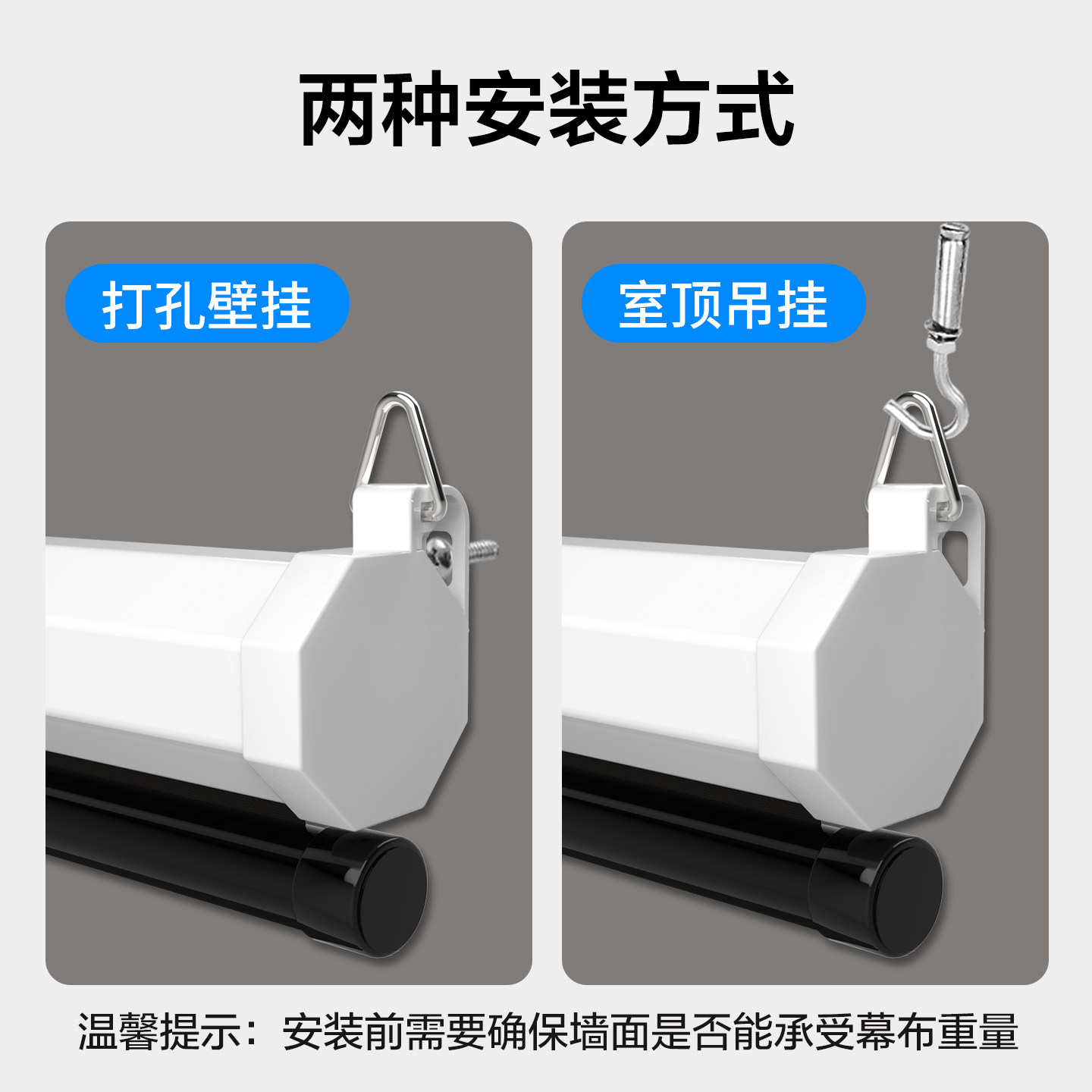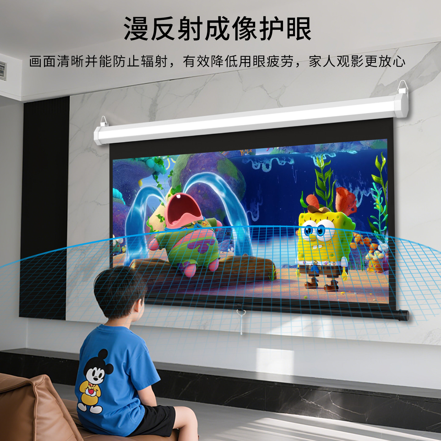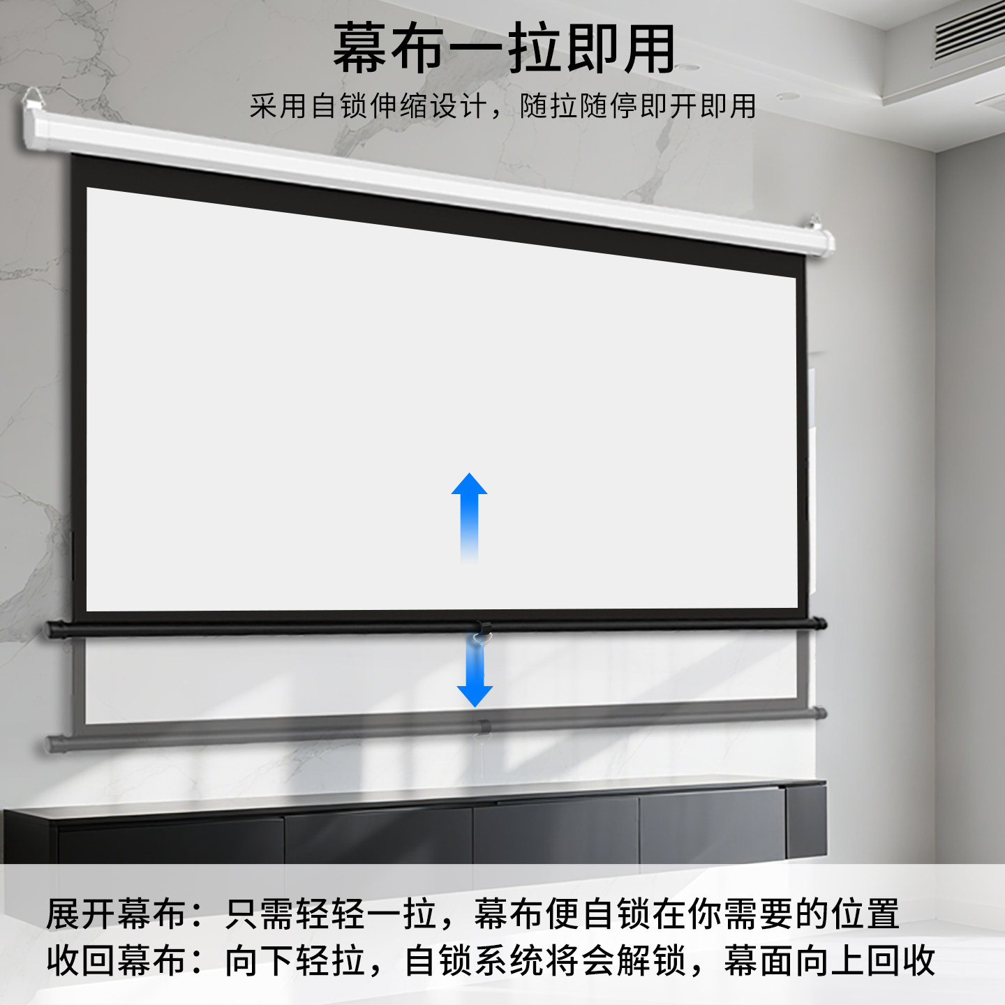 手动幕布投影幕布家用100寸壁挂自动升降投影仪白幕金属高清4k窗帘式手拉挂装客厅120寸投屏幕布