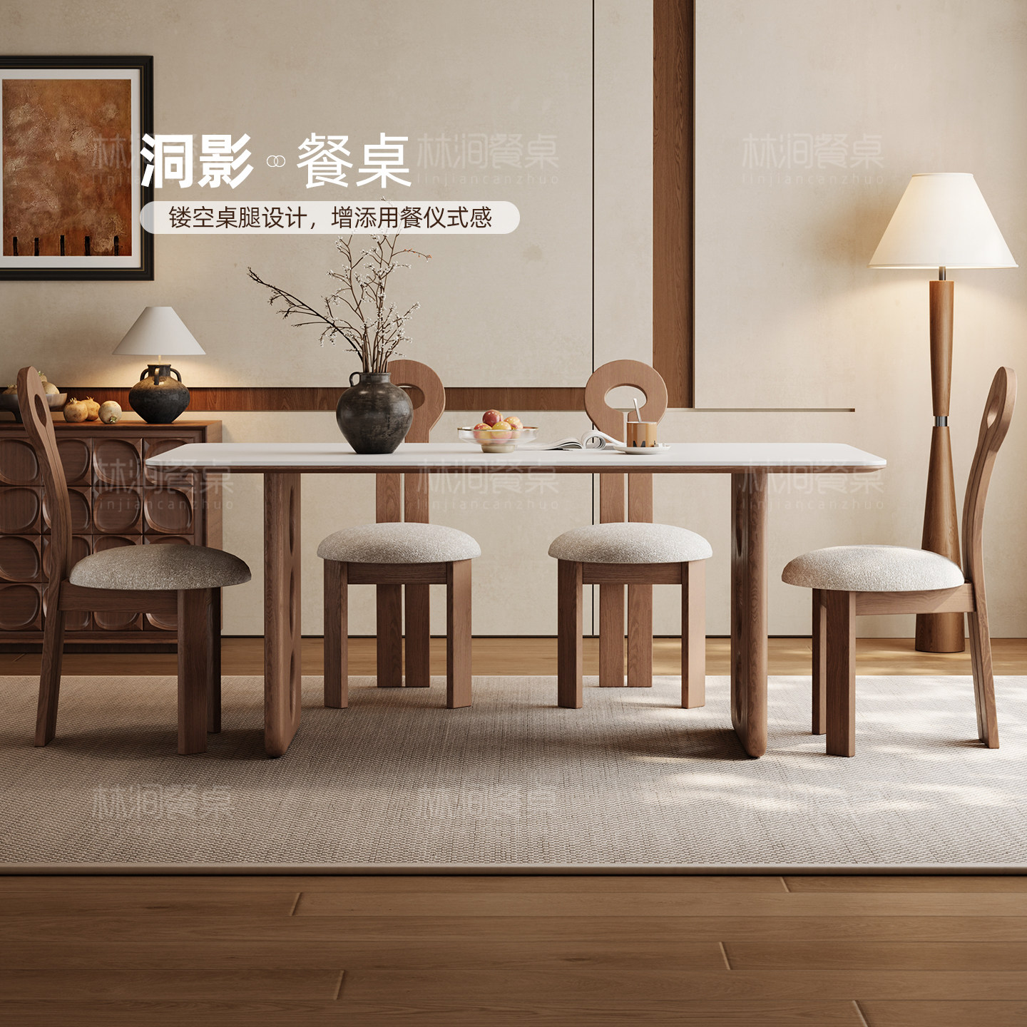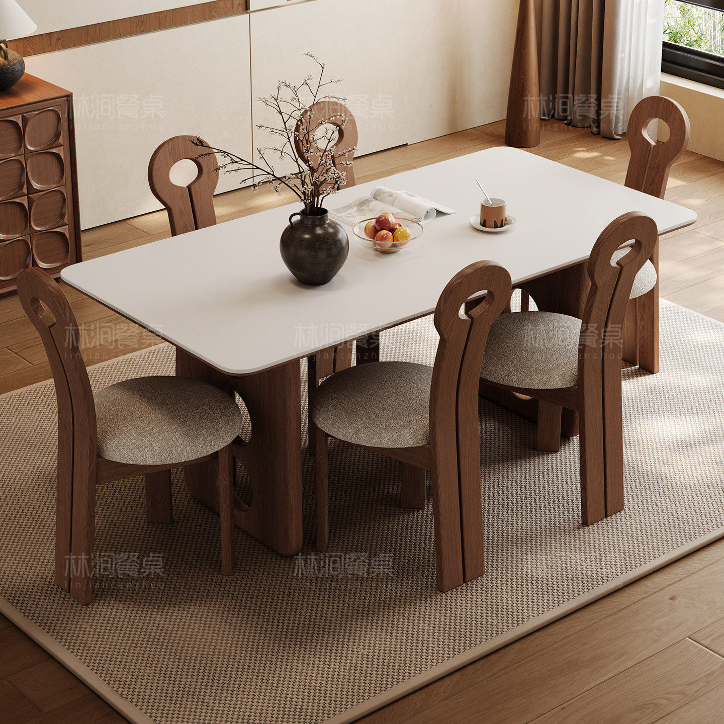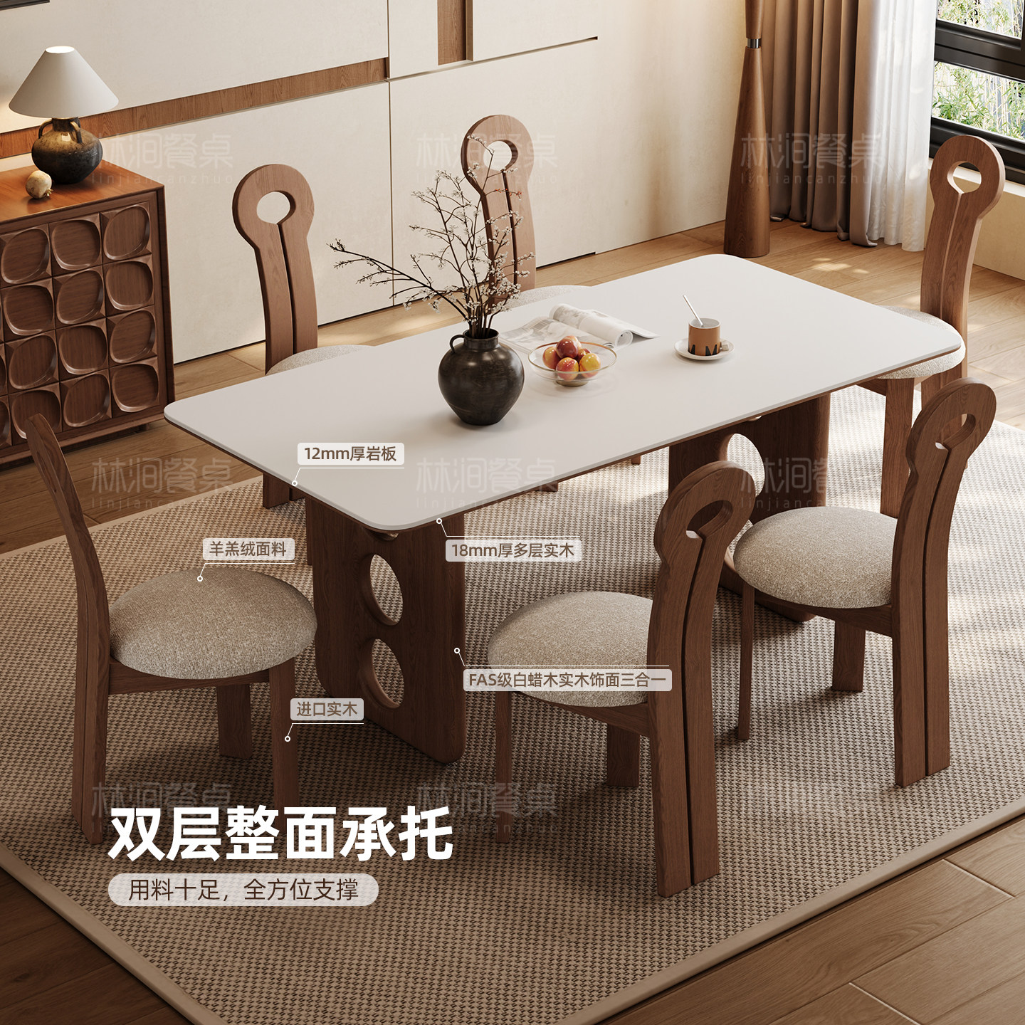 推荐理由:中古风复古纯白岩板餐桌家用小户型2025新款法式长方形实木餐桌椅