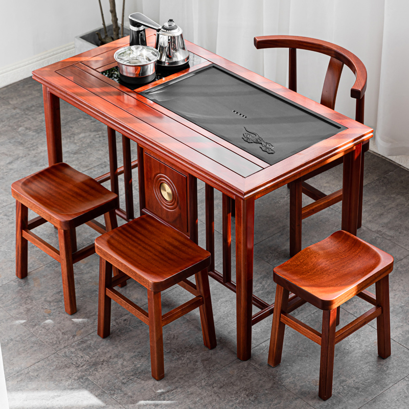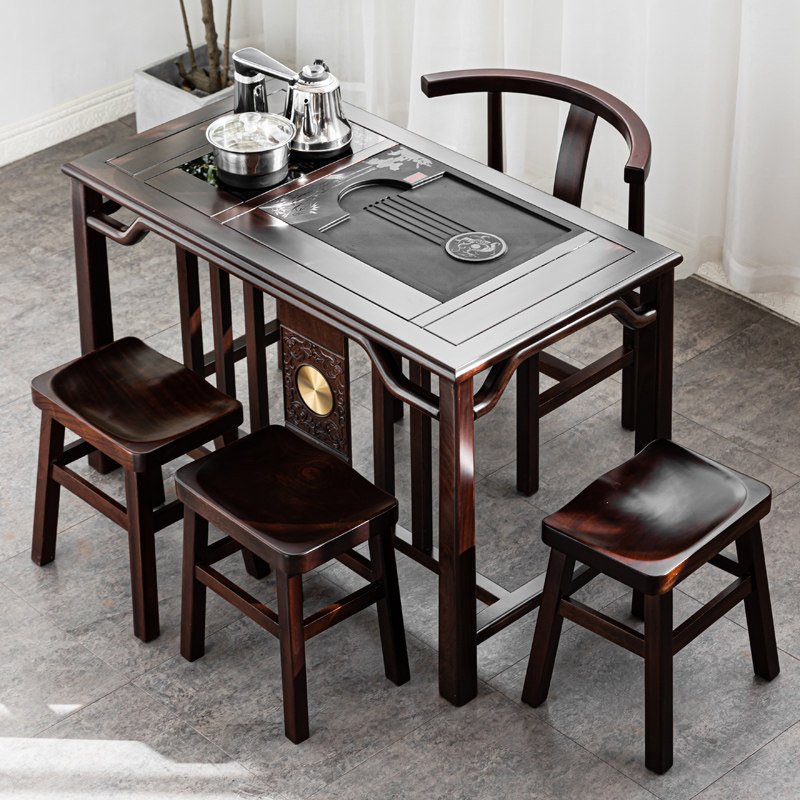 新中式乌檀木功夫茶桌简约现代家用实木茶桌椅组合客厅禅意小茶台