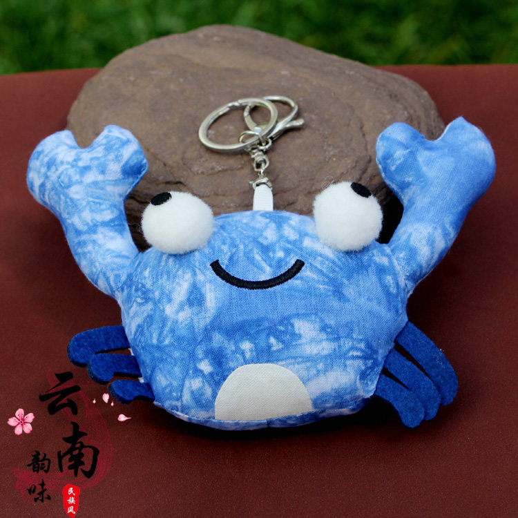 推荐理由:云南民族风大理白族手工扎染布艺螃蟹钥匙扣挂件包包配饰创意礼品