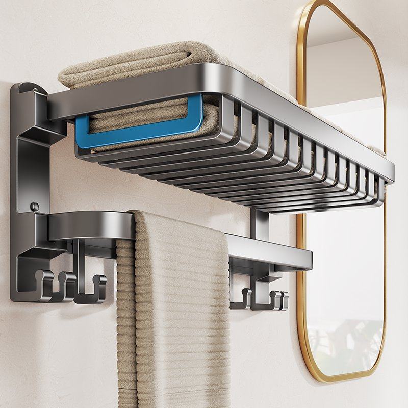 枪灰色高端卫生间浴巾架太空铝置物架五金卫浴挂件套装组合毛