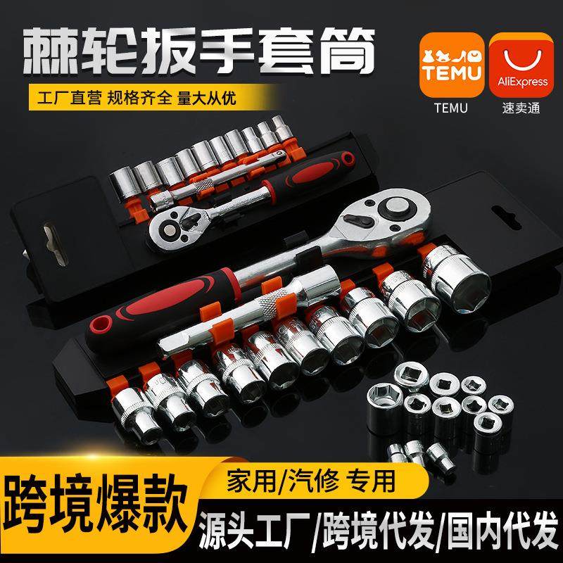 推荐理由:跨境1/4棘轮扳手套筒小飞12件套家用车载汽修五金工具组合套装