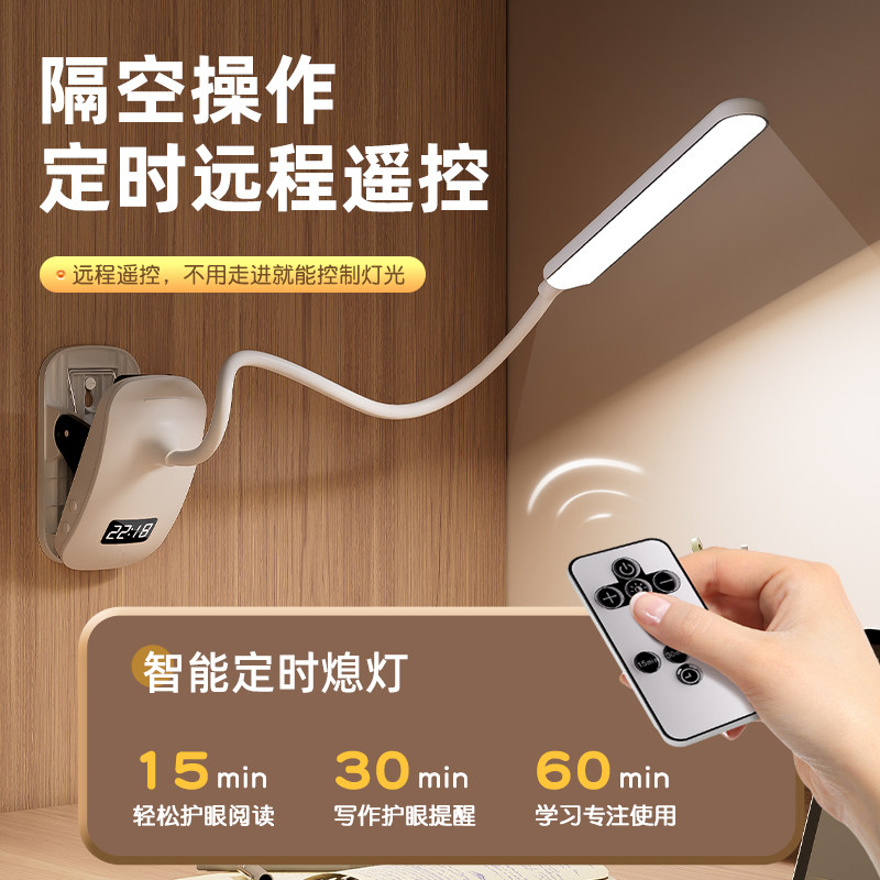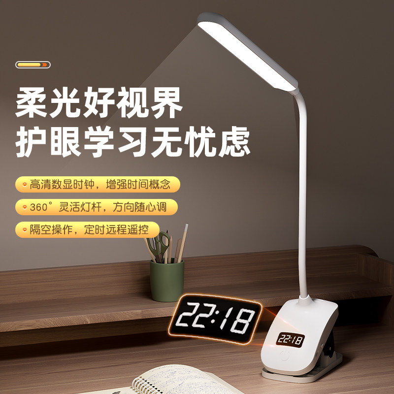推荐理由:护眼台灯学习专用夹式阅读灯柔光数显时钟学生宿舍书桌灯遥控夹灯