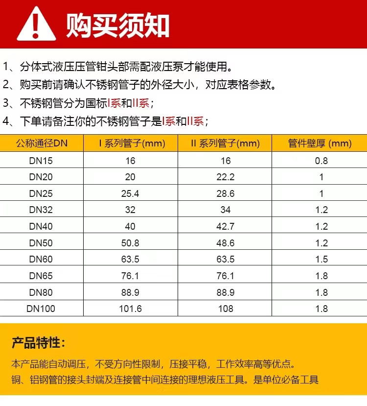 推荐理由:双卡压液压工具不锈钢薄壁水管液压钳手动电动1系2系列管钳