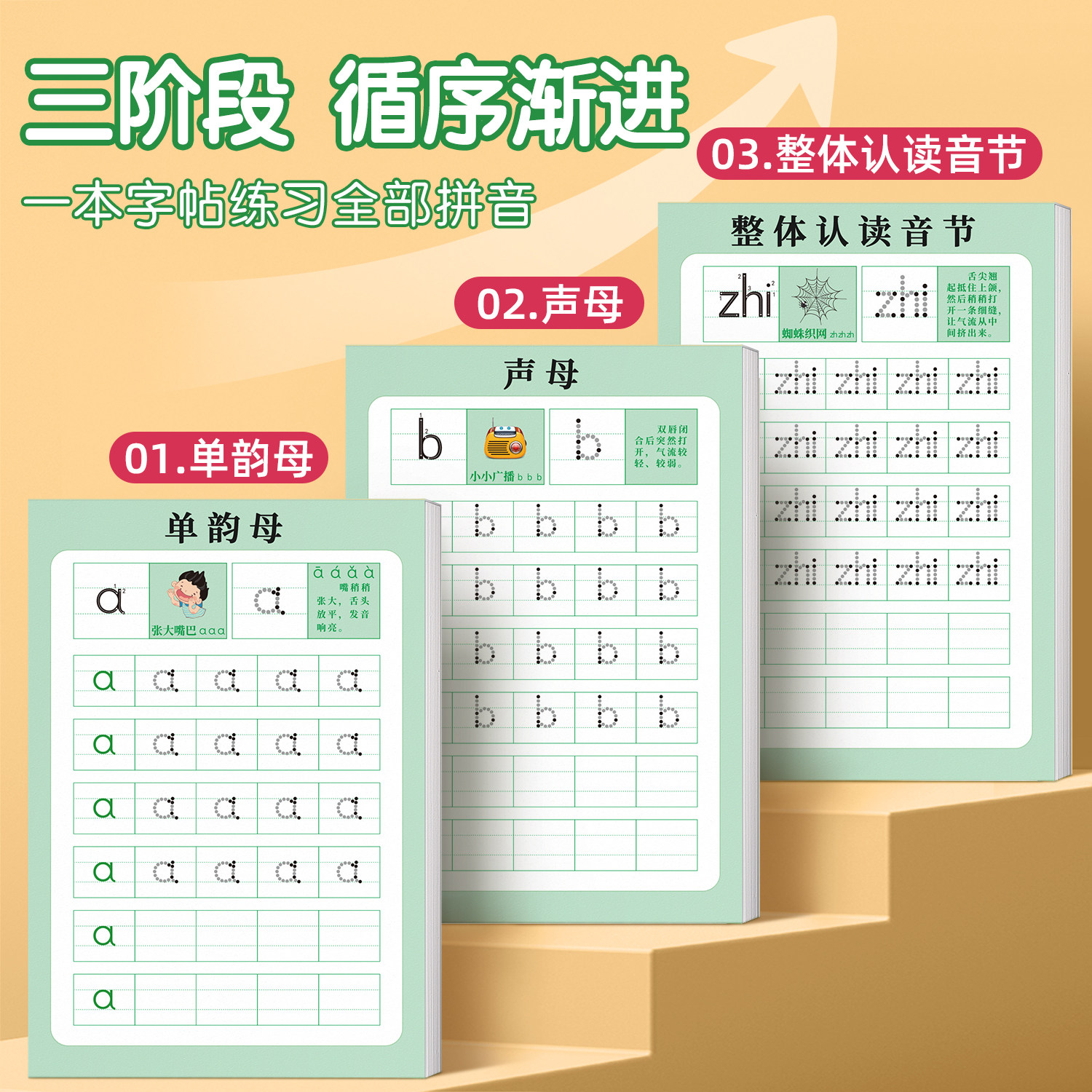 拼音练字帖幼小衔接控笔训练描红本点阵练习册全套专项拼读训练幼儿园入门每日一练教材学前班大班儿童初学者一年级专用字母汉语贴