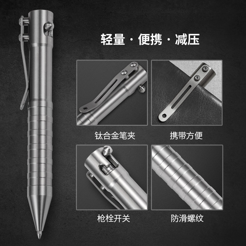 酷撼拉栓笔枪栓战术笔钛合金按动签字笔edc随身商务金属笔重手感