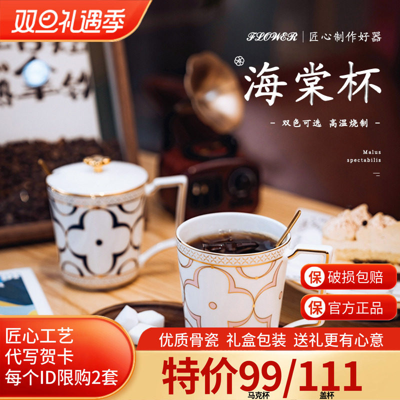 高淳陶瓷海棠杯欧式马克杯情侣水杯带盖轻奢风骨瓷茶水咖啡杯礼盒