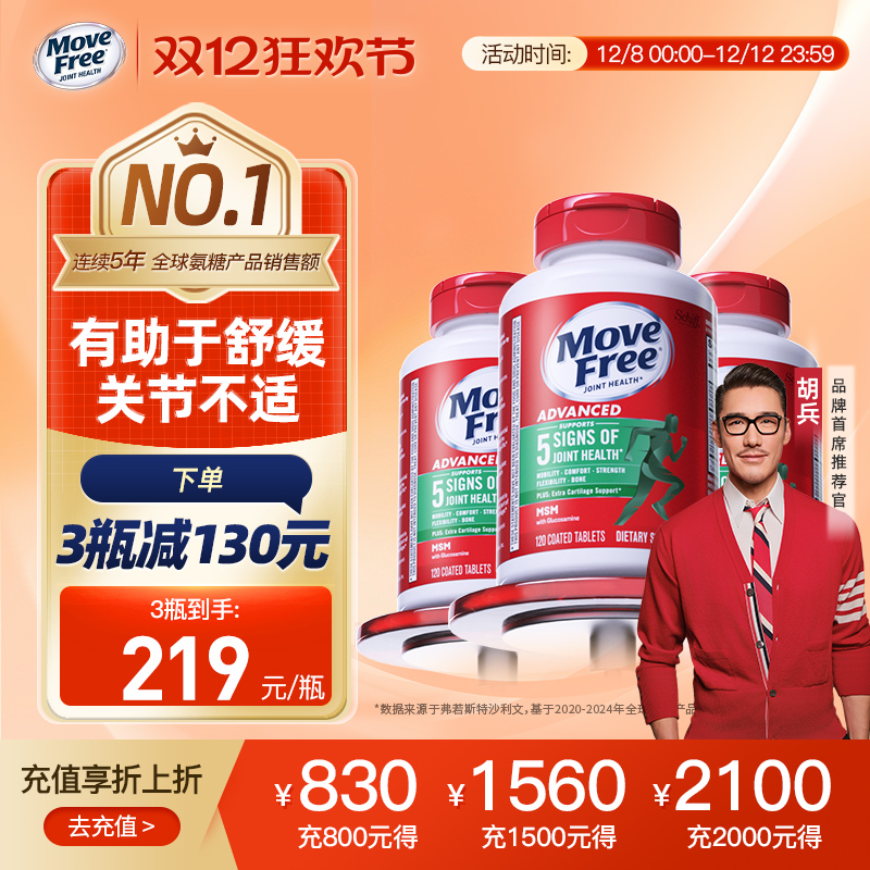 益节MoveFree绿瓶氨糖软骨素MSM中老年养护关节120粒绿标养护关节