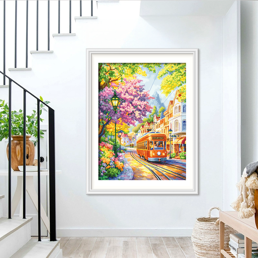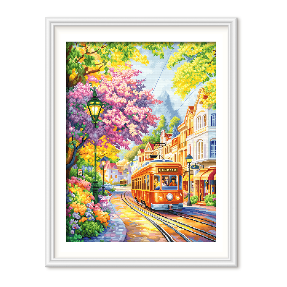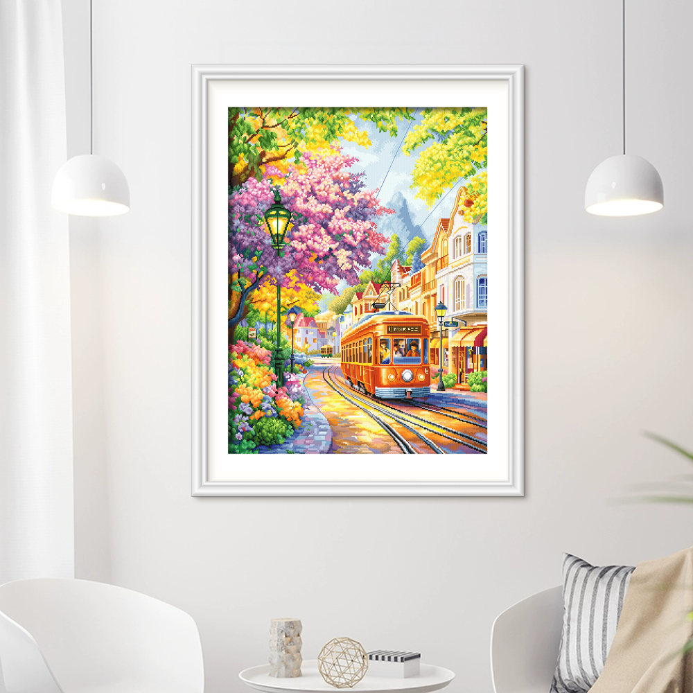 ks十字绣小时光新款自己绣手工DIY棉线套件城市街头电车悠闲解压