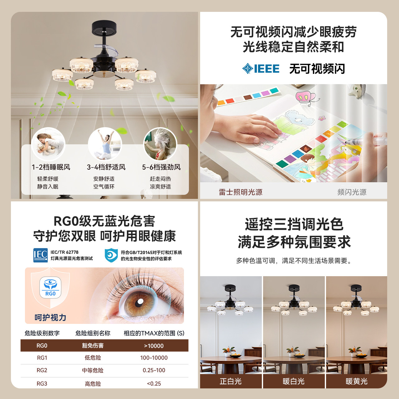 推荐理由:雷士照明现代轻奢客厅隐形风扇灯吊扇新款枕边风卧室餐厅一体灯具