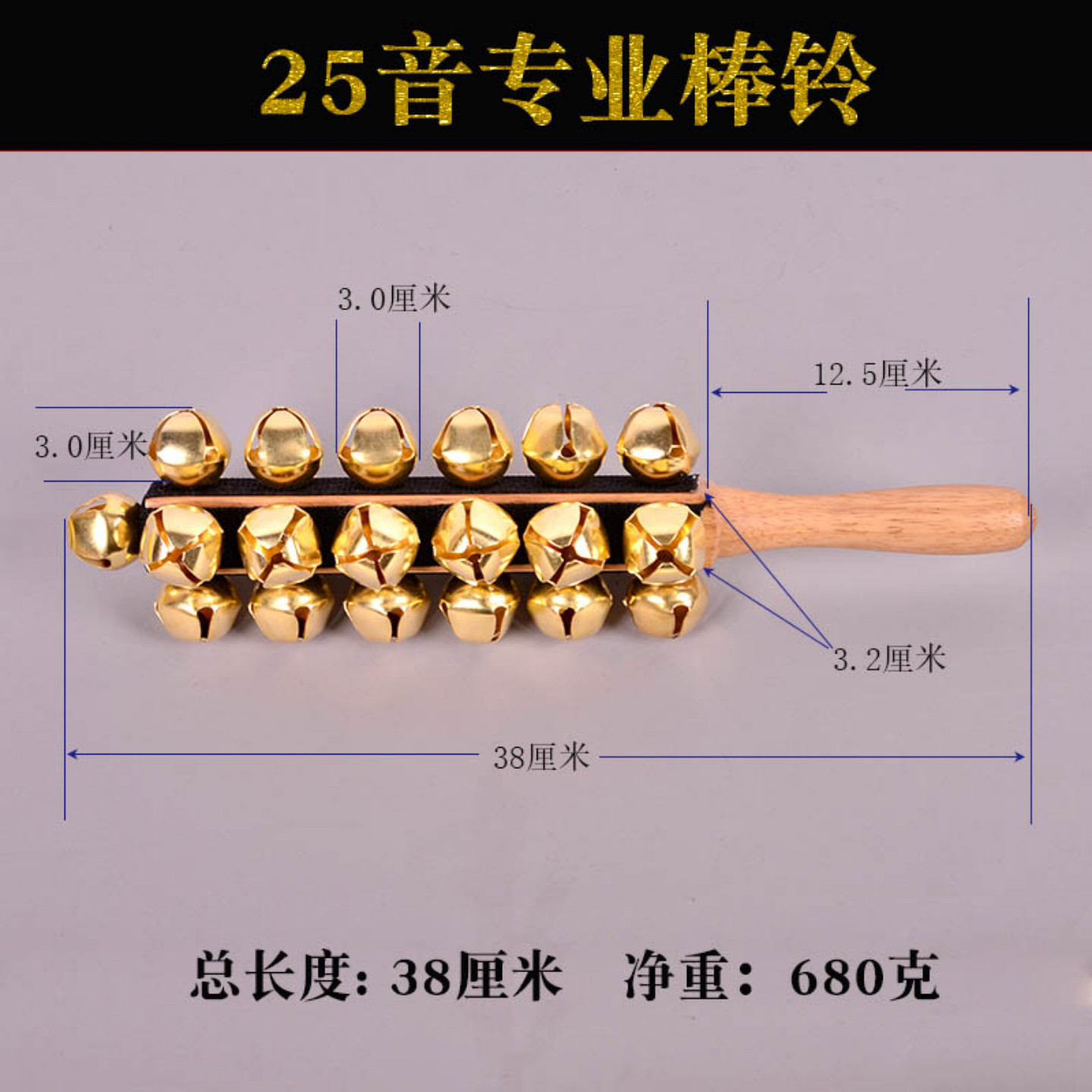 专业打击乐器黄铜铃棒25音雪橇铃串铃成人儿童原木柄手工哗啦棒铃